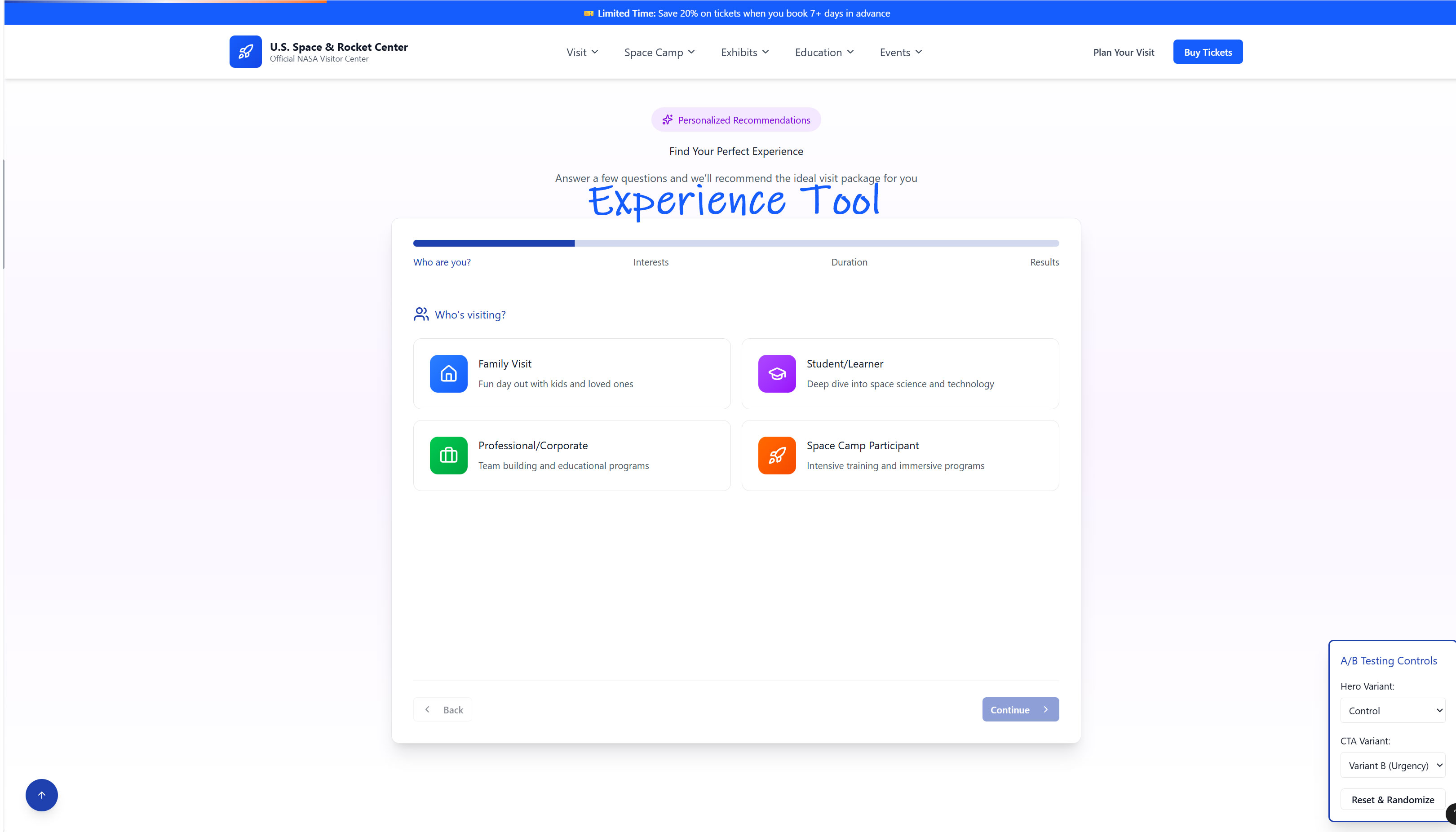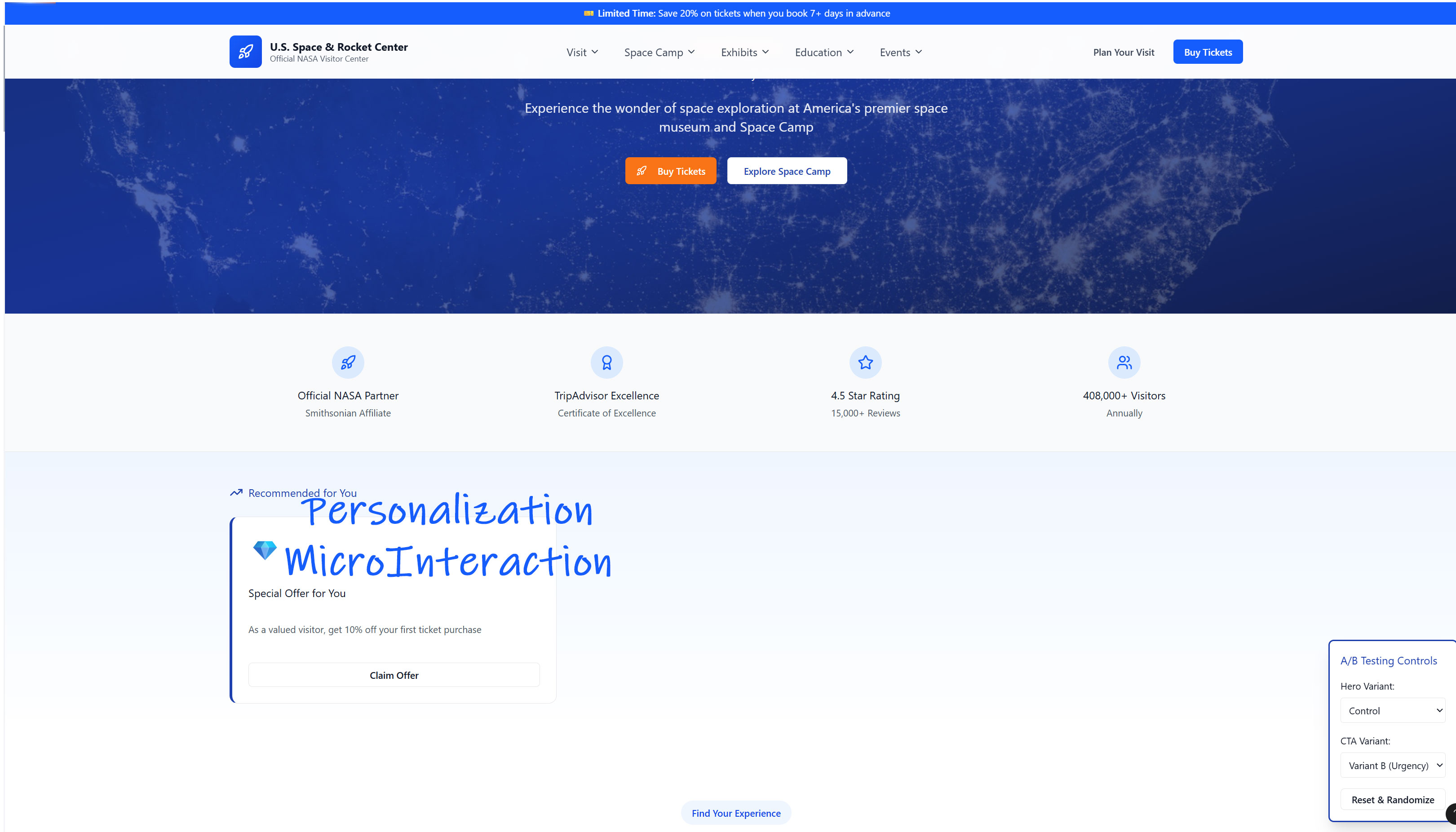 Purpose: Improve Space Camp and ticket purchase funnels.